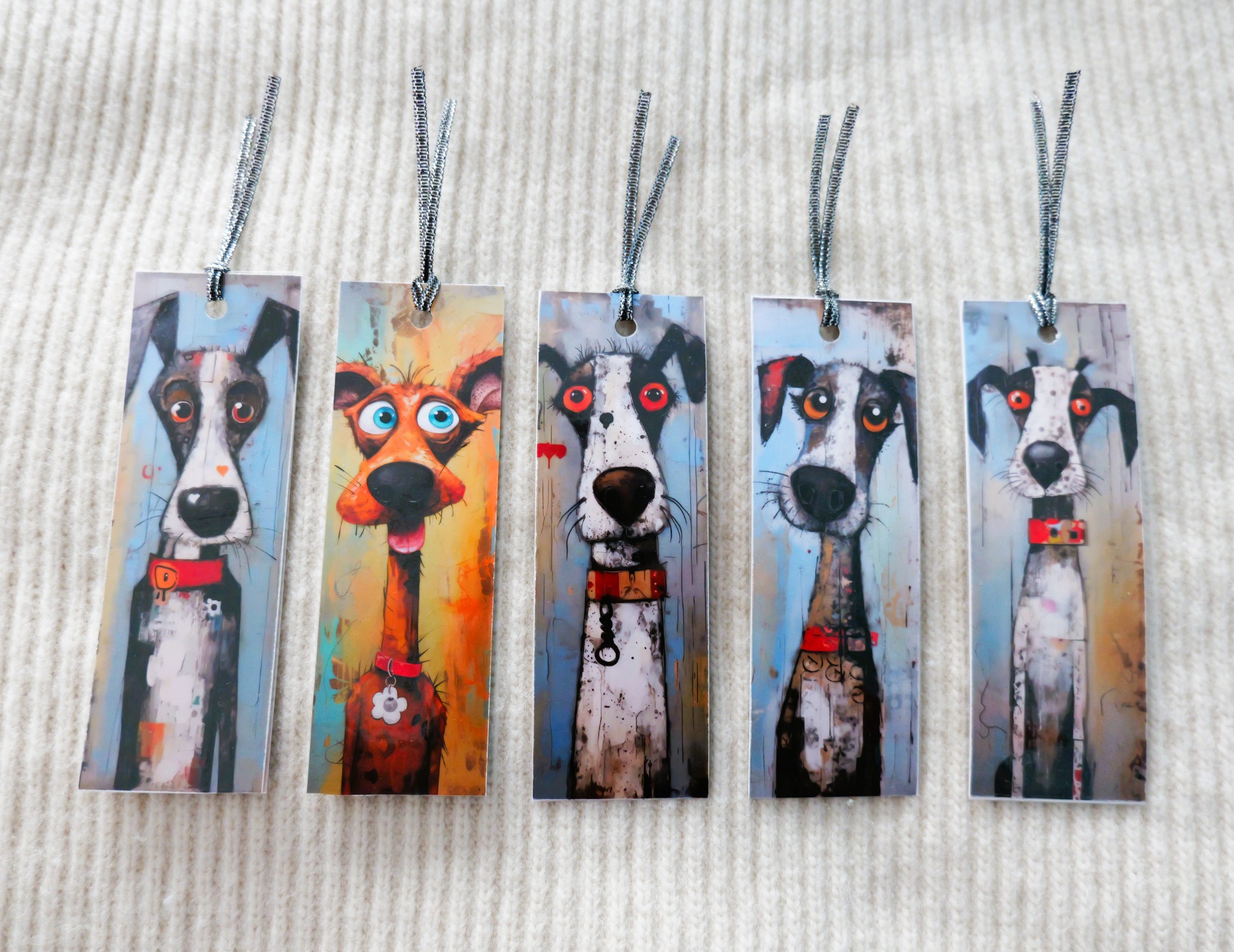 Bring a spark of joy to your reading time with this charming set of illustrated dog bookmarks. Each bookmark features a long‑necked, expressive pup bursting with character — from wide‑eyed mischief to gentle curiosity. The vibrant colours and hand‑painted, cartoon‑style details make every piece feel like a tiny artwork of its own.
